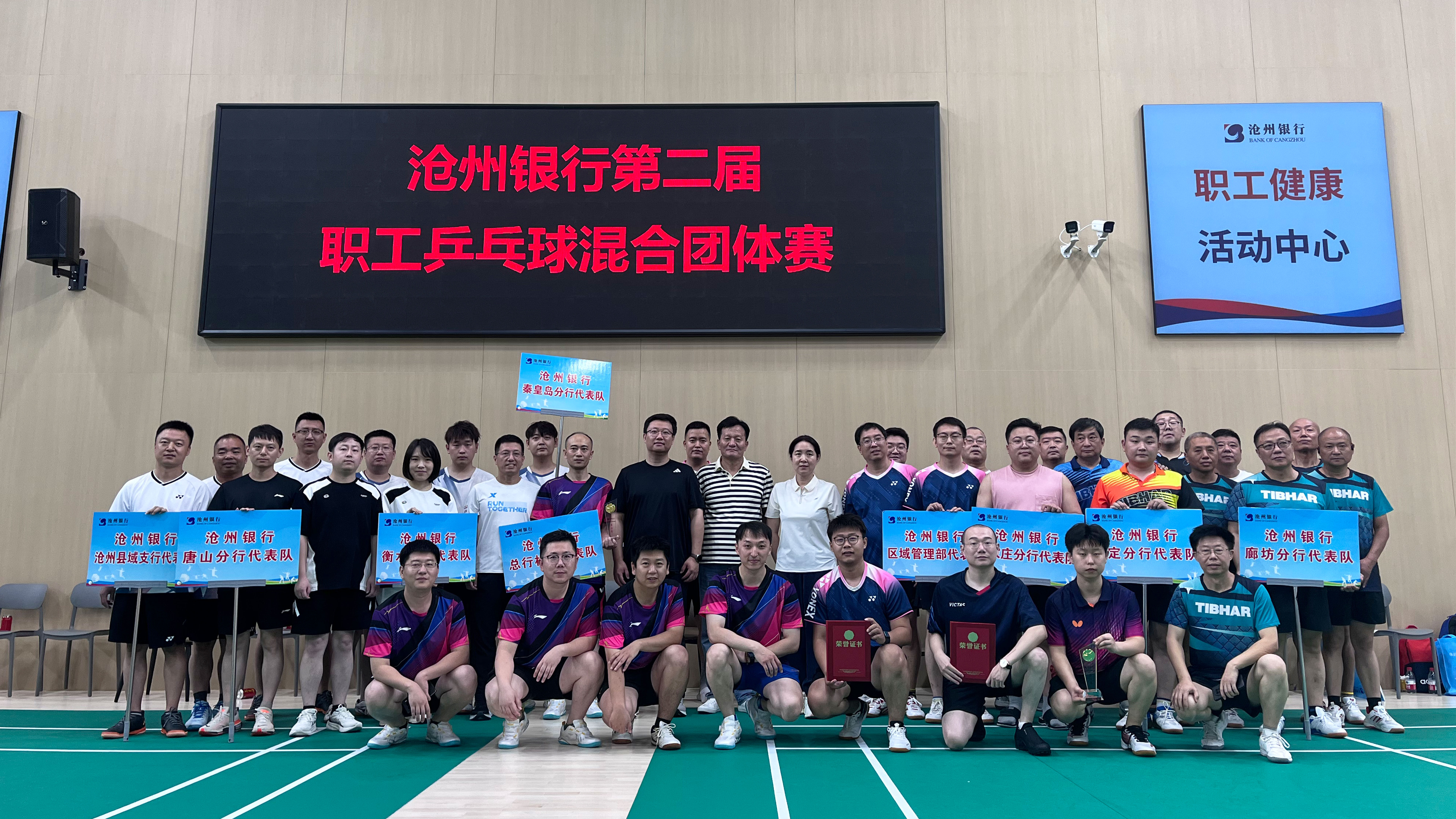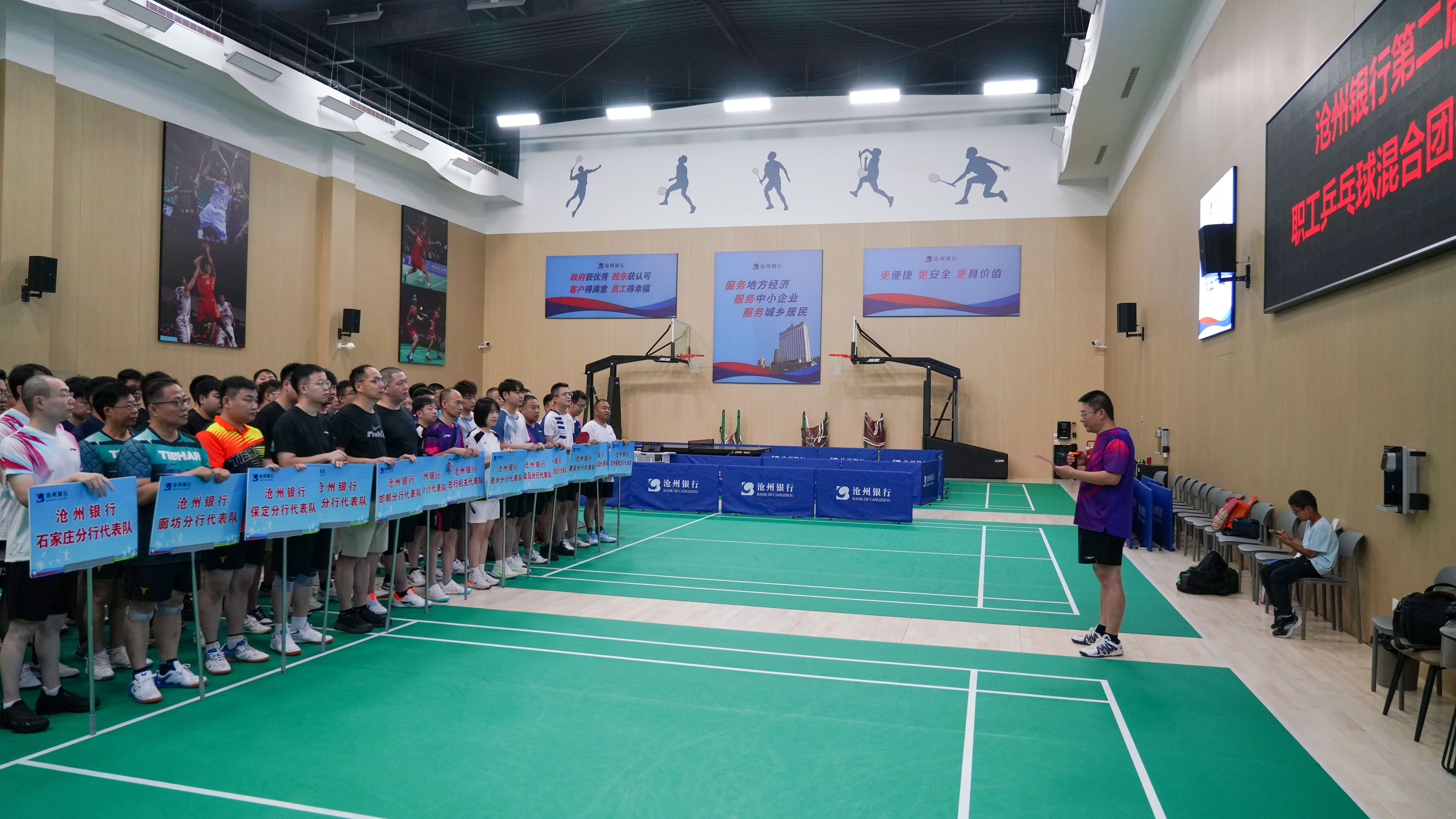 7月26日,沧州银行职工健康活动中心内喝彩声此起彼伏,第二届职工乒乓球比赛在此火热开赛。来自各分行、渤海新区黄骅支行、沧州市区县域支行及总行机关的58名运动员组成的13支代表队展开激烈角逐。本次活动由总行工会主办,党委委员、监事会主席宋永岗出席开幕式并发表致辞,工会主席王桂民、老领导王彤来到闭幕式现场,为获奖队伍颁奖。