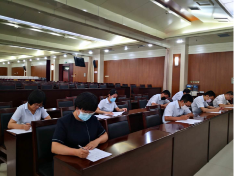 2020年8月3日,为深入学习贯彻《中华人民共和国公职人员政务处分法》,教育引导全体干部员工进一步增强纪律意识和法治意识,提升大家依法履职、秉公用权、廉洁从政的能力,实现“以考促学、以学促用”的目标,总行各部室对学习情况进行考试(图为资产经营中心在二楼会议室考试)。